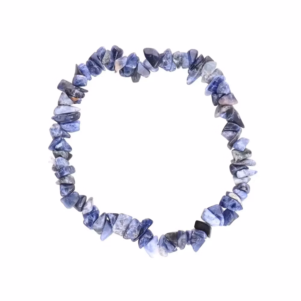Ett enkelt men vackert chipsarmband där stenen står i fokus. Sodalit i djupblå nyanser med naturliga inslag av vitt ger ett lugnt och balanserat uttryck. De mindre stenarna skapar ett nätt och levande armband.