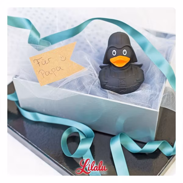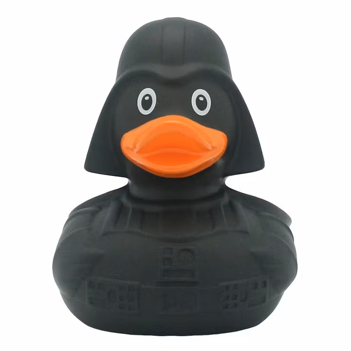 Klassiska badanka i ny tappning i form av en anka i svart, klädd likt Darth Vader. Cool!
