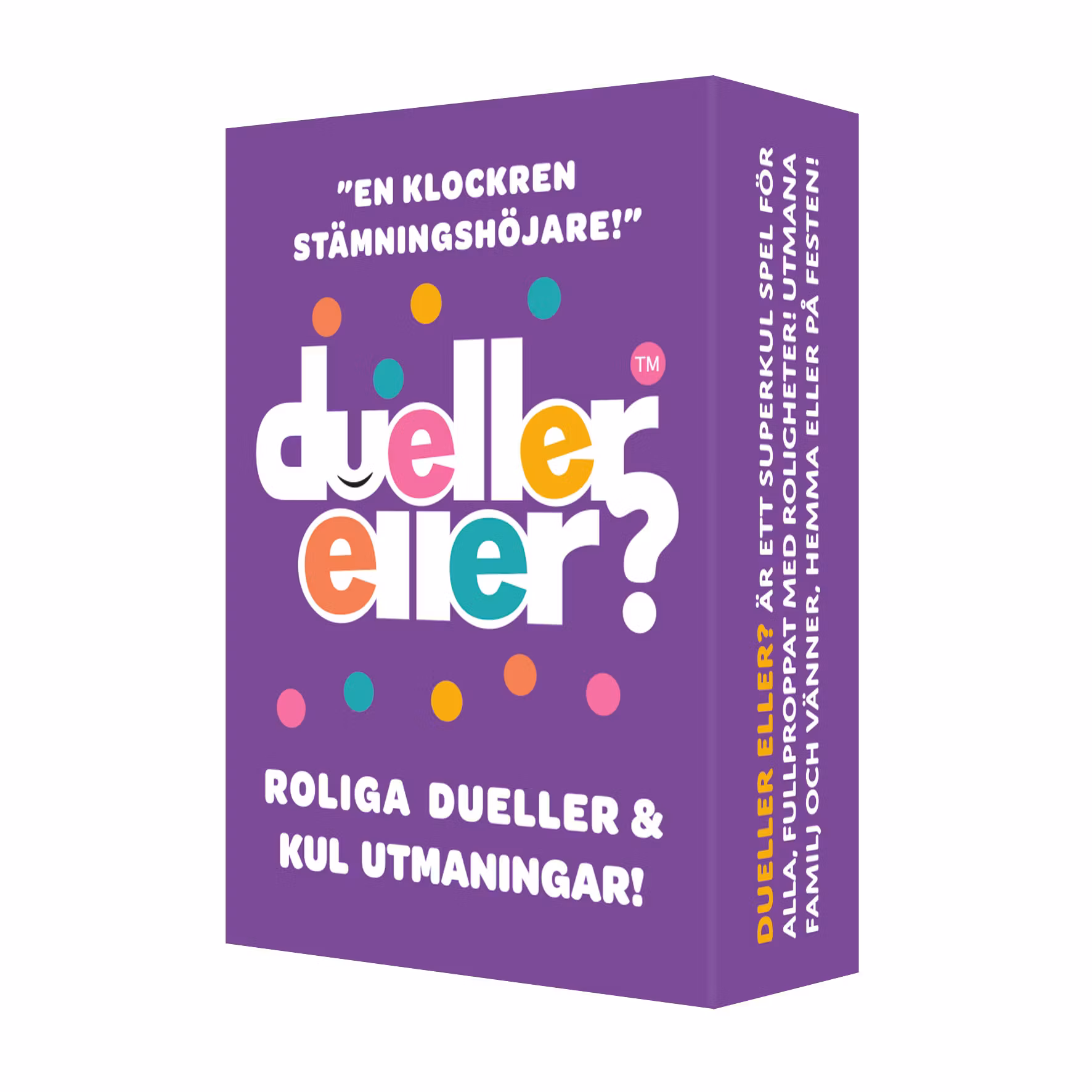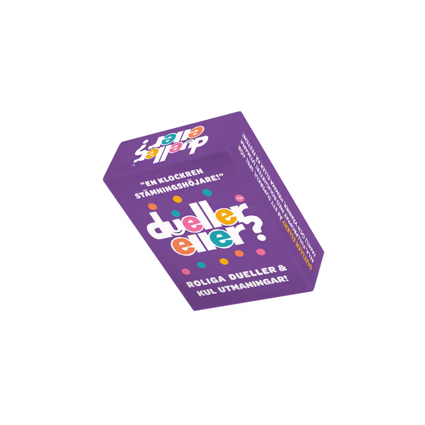 Dueller eller? är ett galet kul spel fyllt med små tävlingar, roliga utmaningar och underhållande dueller. En riktig stämningshöjare som passar både familj och vänner.