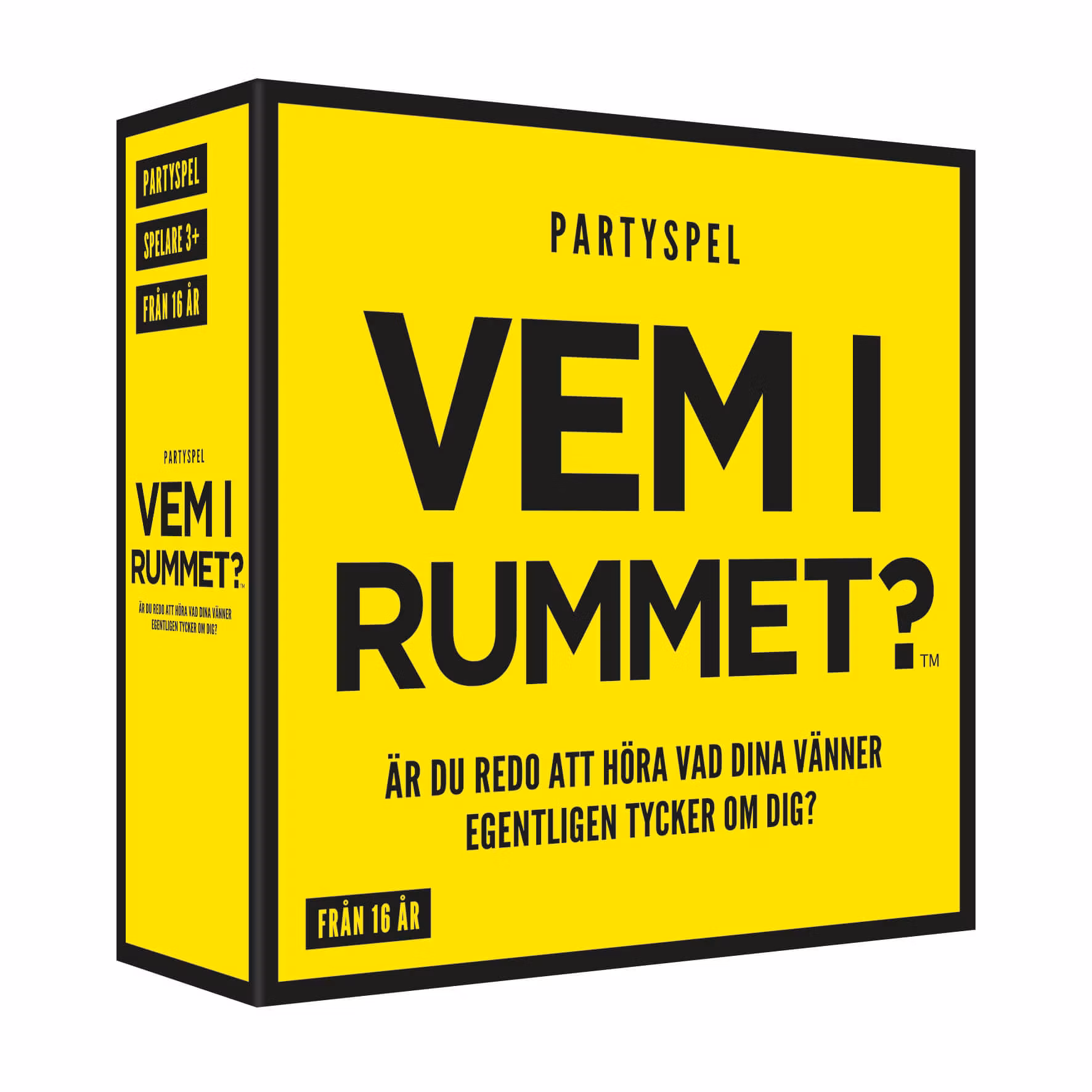 Vem i rummet? är ett roligt och avslöjande sällskapsspel där spelarna får säga vad de egentligen tycker om varandra. Varje fråga börjar med frasen "Vem i rummet..." och leder ofta till både skratt, diskussioner och oväntade avslöjanden. Kul partyspel.