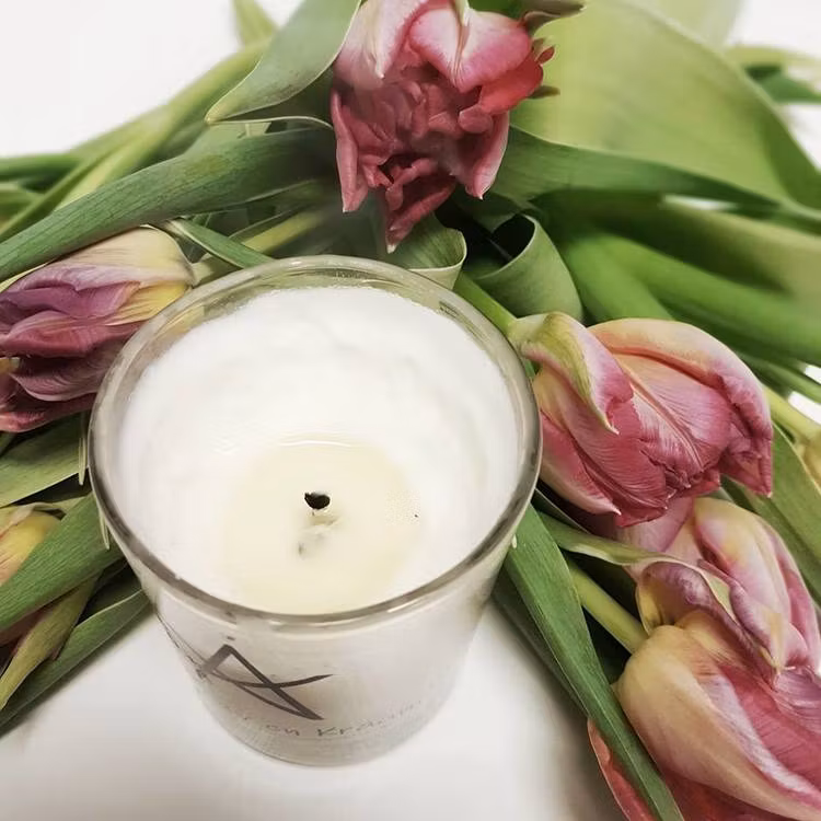Doftljuset kommer i ett livsmedelsgodkänt glas som är 50% återvunnet. Diska gärna ut det när det är tomt och använd som dricksglas eller små dessertskålar. Glasets diameter är 7 cm och höjden är 8.5 cm
