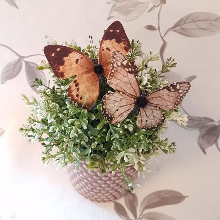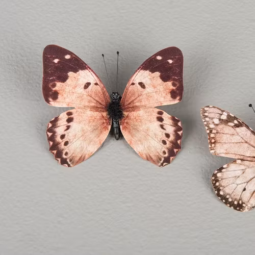 Söta fjärilar för dekoration.Enkla att fästa med ett litet clip som sitter på baksidan.Säljs i 2-pack.Färg: brun. Alla fjärilar är olika och skiljer sig lite i