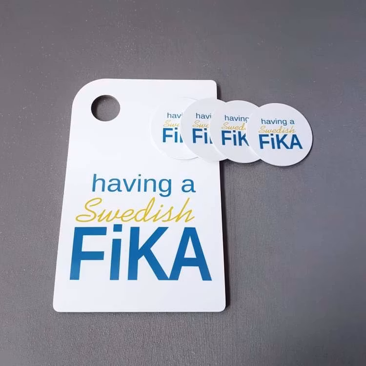 Fina underlägg med texten Having a Swedish fika