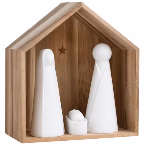 Du får 3 porslins-figurer som förstås är Jesusbarnet. Maria & Josef. Figurerna är lösa och kan flyttas om i krubban. En stilren och klassisk dekoration.
