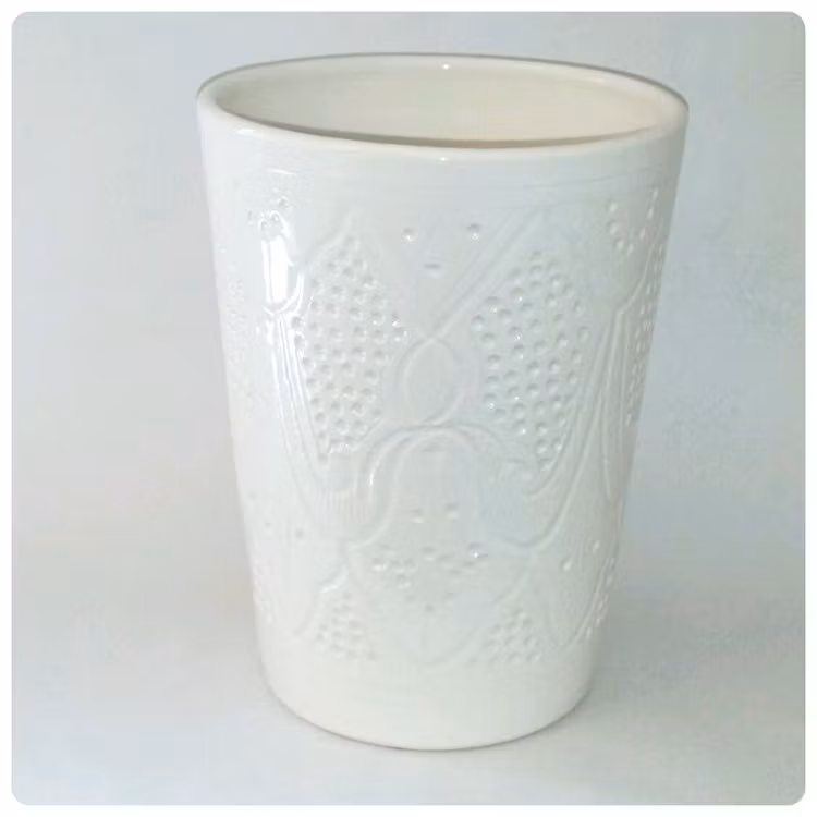 Kruka från Marocko. Vackert mönster som är stansat in i keramiken och sen lämnat "naket" dvs inte fyllt i någon färg.