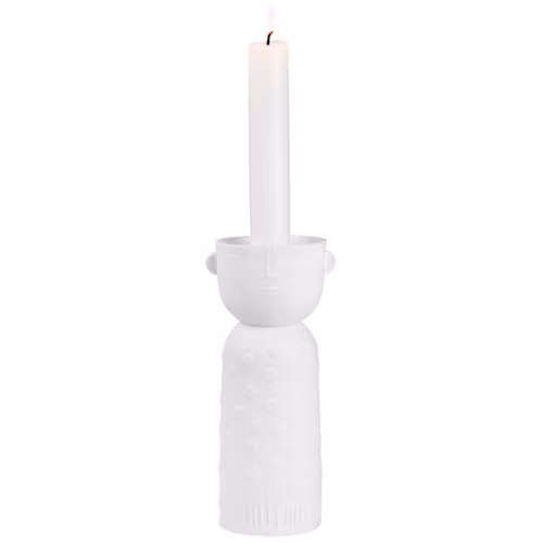 Underbar ljusstake i vitt porslin. Unik design som känns både modern och klassisk. Porslinet har ett fint präglat mönster och är delvis glaserad.Höjd 15 cm. Dia