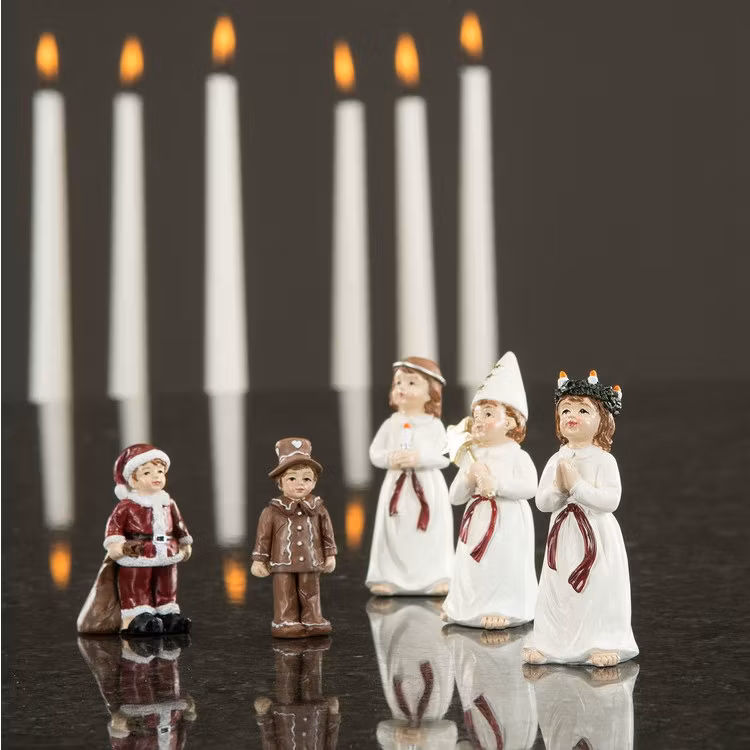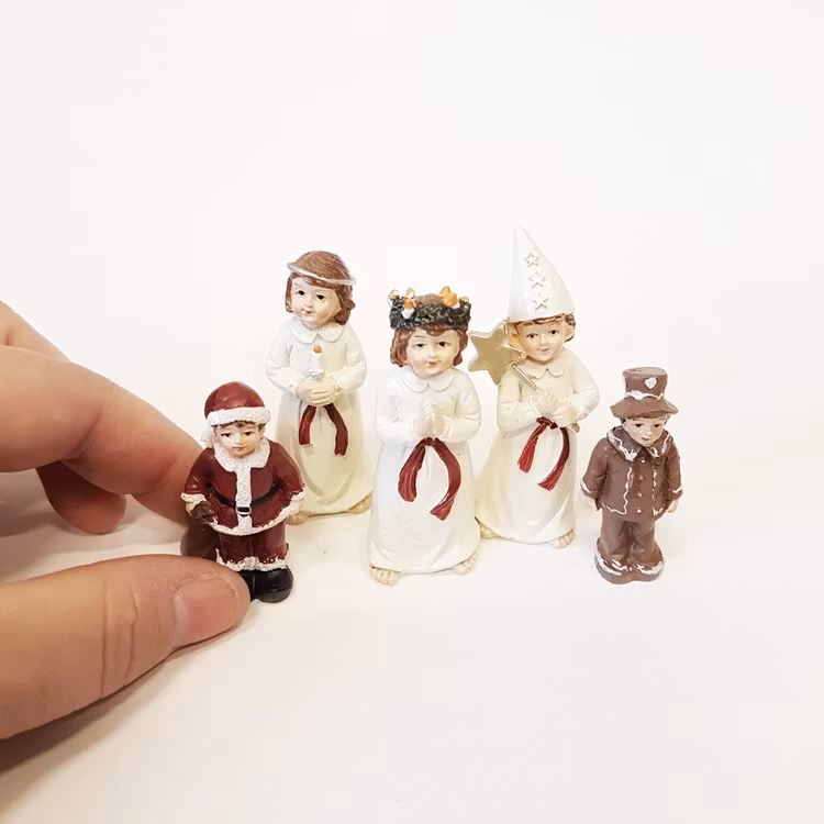 Finaste lilla luciatåget med 5 söta barn.5 figurer som du placerar där du vill. Målade i klassiska färger i gammaldags stil med fina detaljer.Figurerna är ca 5-