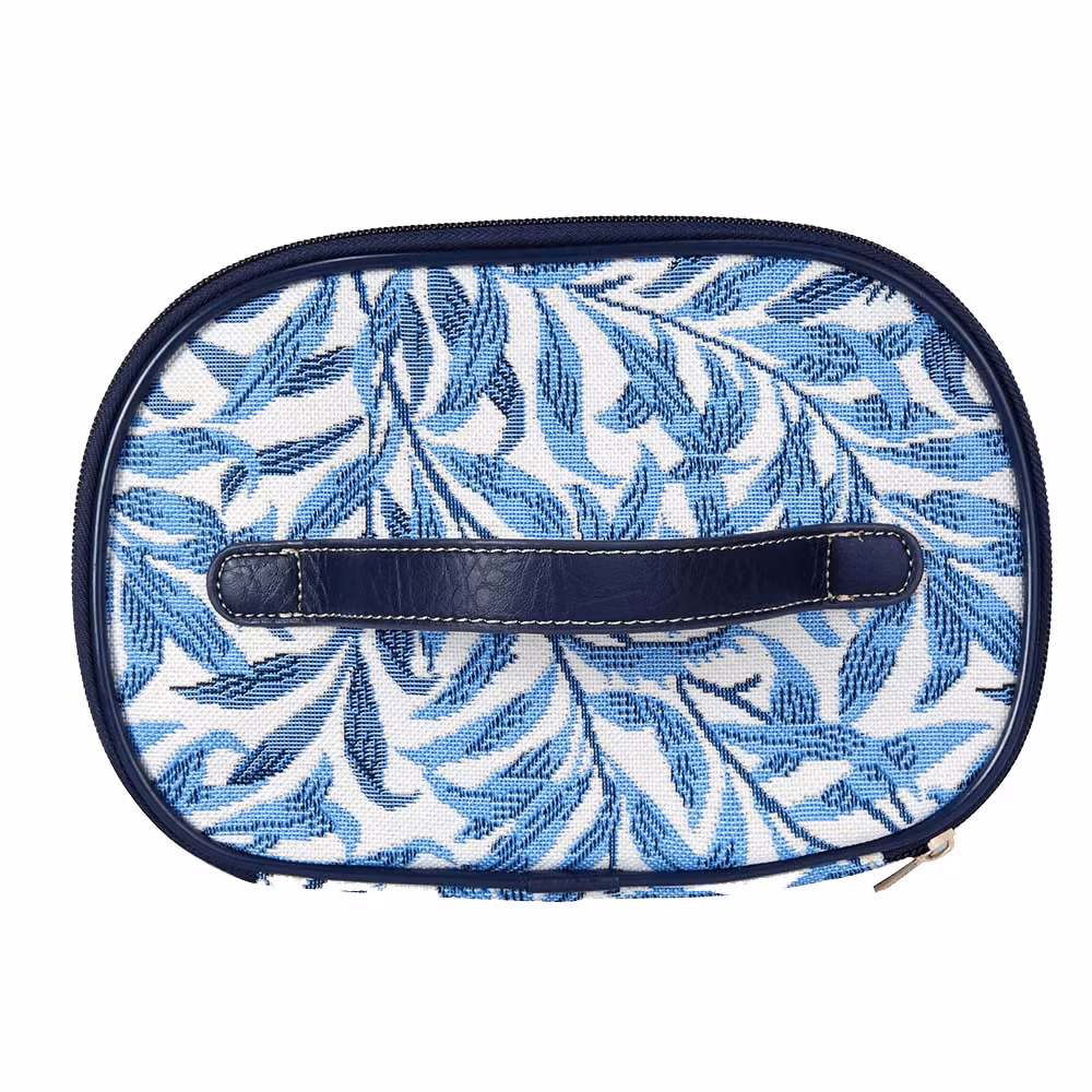 Elegant necessär i gobelängtyg med William Morris-mönster. Perfekt för smink och toalettartiklar. Hållbar och stilren design med ekologiska material.