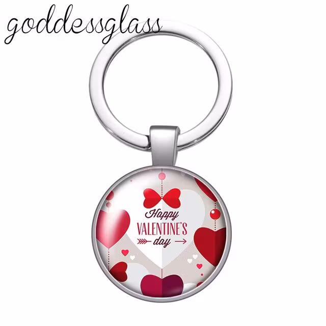 Nyckelring med texten: Happy Valentines dayNyckelringen är tillverkad i rostfritt stål. Texten finns inuti en glasbubbla med en silverfärgad ram. Bubb