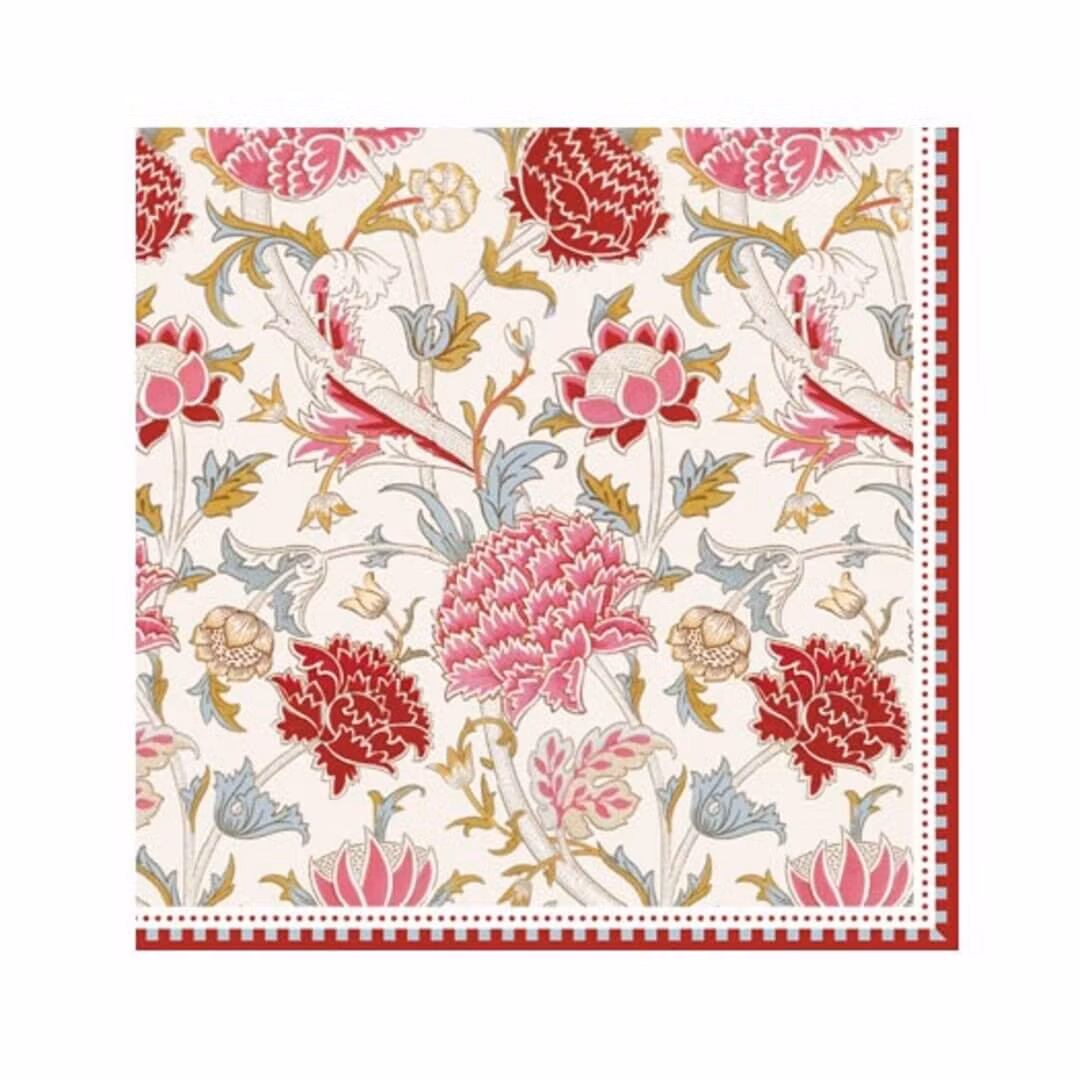 Duka upp med stil och elegans med denna färgstarka servett från William Morris, med det vackra mönstret Morris Cray Pink.Låt din dukning blomma med de vackra Mo