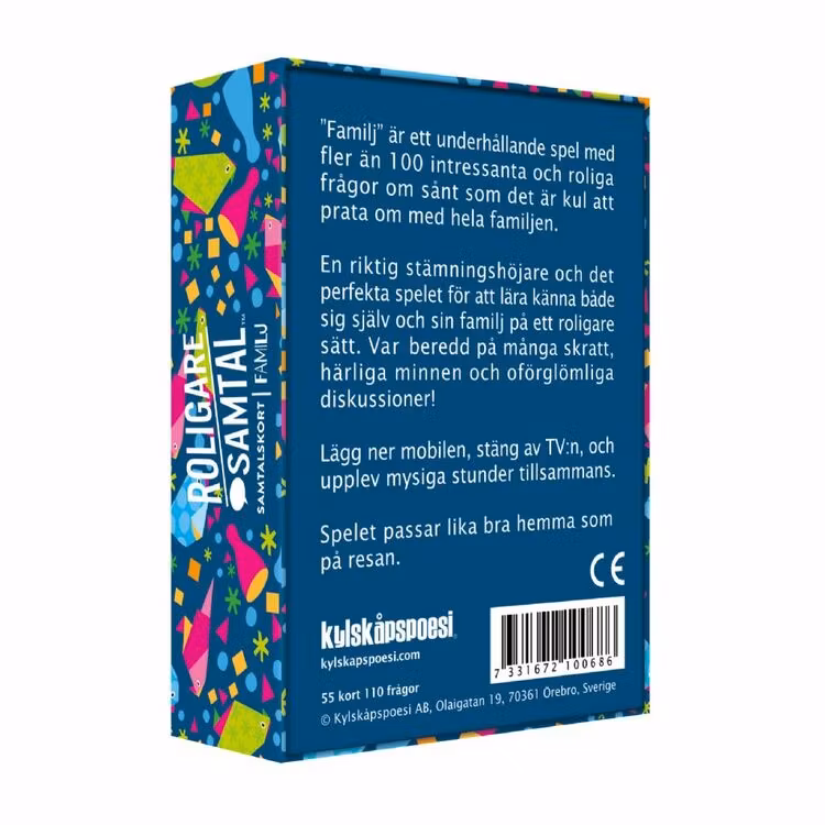 ”Familj” är ett underhållande spel med fler än 100 intressanta och roliga frågor om sånt som det är kul att prata om med hela familjen.