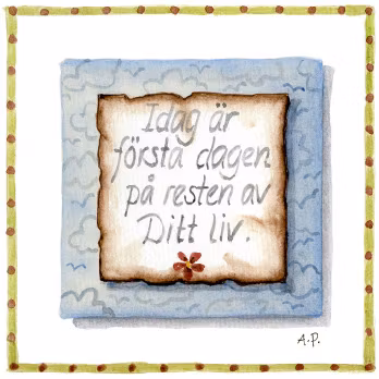 Ask med tändstickor med fint motiv målat "Idag är första dagen på resten av Ditt liv"
