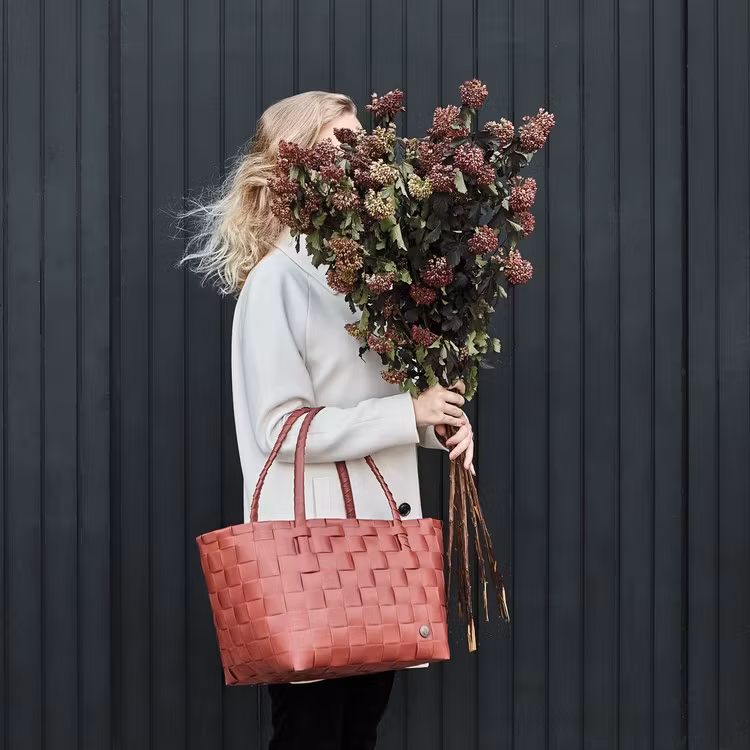 Väska Paris från Handed By i färgen rusty red, roströdEnkel fin design i vävd i återvunnen plast. Hållbar, står stadigt och är lätt att rengöra. Perfekt till sh