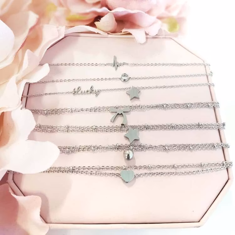 Vacker fotlänk i stål. Längden kan justeras 18-23 cm.